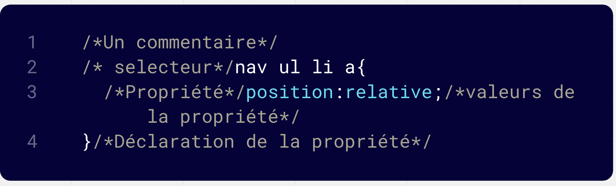 À droite de la propriété, après les deux points, on a la valeur de la propriété. Celle-ci permet